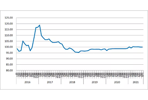 圖1  2016年以來各月中國公路物流運價指數(shù)