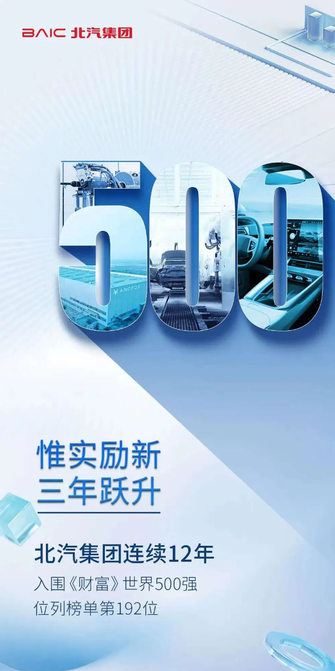 北汽集團(tuán)連續(xù)12年入圍《財(cái)富》世界500強(qiáng),位列榜單第192位